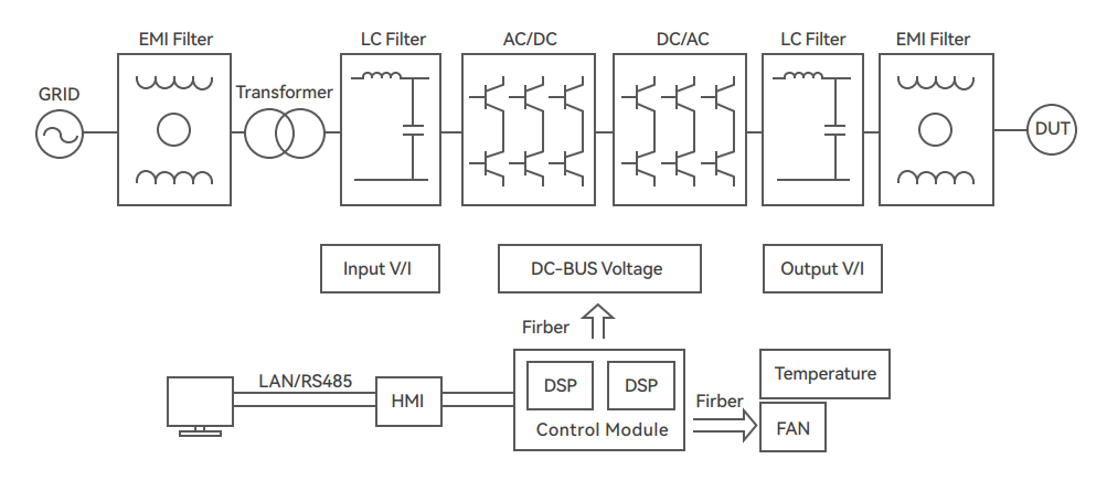 BSL 系列電源可在電源模式與再生模式下運行,可實現全能量饋網。