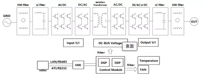 KGS 系列是一款功能強大、具備快速動態響應的電網模擬器,可用於分散式發電系統的電氣特性測試,如儲能變流器、光伏逆變器等。模擬功能多樣,包括:電網電壓異常模擬、電網頻率異常模擬、三相不平衡、諧波和間諧波、低/零電壓穿越測試、防孤島測試等。